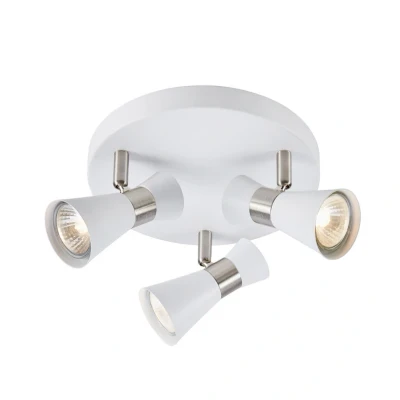 The Folie Round 3 Ceiling Light White/Nickel from Markslöjd is the ideal solution when you need efficient and stylish lighting in your home. Made from robust iron, this ceiling light combines an elegant white and nickel finish that fits perfectly into modern interiors. With its compact, round ceiling plate, Folie takes up minimal space, making it perfect for smaller spaces such as a hallway, office or walk-in closet. The three adjustable lamp heads allow you to direct the light exactly where you need it, ensuring optimal lighting in all corners of the room. The discreet steel details add a touch of elegance to the design. To get the best out of this lamp, you need three GU10 LED light bulbs of max 7W, which are not included. Mounting is simple with the included ceiling bracket. Make your home brighter and more functional with this versatile ceiling spot from Markslöjd.