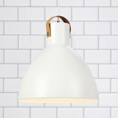 Eagle - pendant light with large metal lampshade The Scandinavian-style Eagle pendant light is ideal as a visually understated, direct light source above the living room or dining room table. The simple metallic dome lampshade with a cylindrical top is complemented by the colour of the textile cable. A leather loop on the lampshade adds a lively touch.