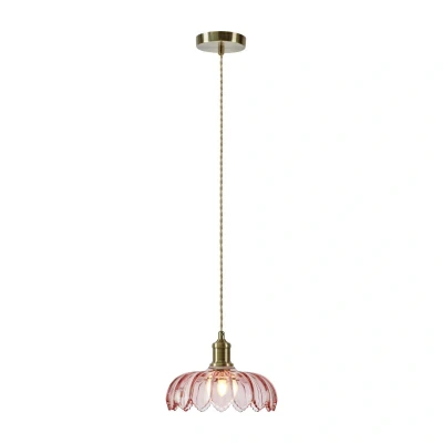 Kurage pendant light: elegance for stylish living spaces The Kurage pendant light combines high-quality materials such as iron and glass with a harmonious colour scheme in antique brass and pink. Its timeless design blends seamlessly into various living areas such as the kitchen, living room or dining room, adding stylish accents. The careful workmanship and combination of classic and modern elements make this light an eye-catcher in any room. Thanks to the option of controlling the light via an external dimmer, the lighting mood can be individually adjusted. Whether for cosy evenings or productive moments – the Kurage pendant light offers flexibility and elegance in one. The E27 socket also allows you to choose different bulbs to optimally match the lighting to the respective environment.