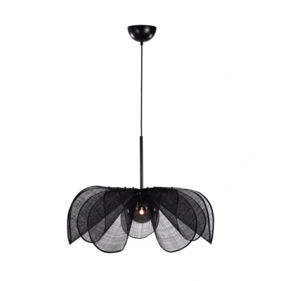 Styrka Pendant Ø75 Black/Smoke is reminiscent of a flower with its delicate petal-shaped lampshade that almost embraces the interior. The lampshade is made of banana fibres and is beautifully shaped in soft curves that accentuate the floral look. The textile itself is finely woven, creating a beautiful transparency, which not only contributes to a beautiful visual aesthetic, but also ensures a pleasant light pattern when the lamp is switched on. The atmospheric lighting is perfect for complementing the overall lighting in the living room or as a bedroom light. The lamp is the brainchild of Swedish design duo Filippa Rådin and Anja Pärson for Markslöjd.