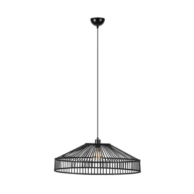 Tapa 1 Pendant Light Black presents itself in a light and open design that beautifully opens up the room. With a diameter of 70 cm, the lamp is relatively large and can thus fit nicely over the dining table or as basic lighting in the centre of the room. The lampshade has a beautiful design in bamboo that is processed by hand and moulded to form a nice, wide structure that resembles a lid. The space between the bamboo rods is wide enough to allow the light to shine out in a direct beam to all sides around the lamp. The result is not only a practical downlight but also beautiful room lighting at the same time. Since the light source is visible, you can choose a decorative bulb model, such as a filament bulb, which beautifully supports the rustic style of the lamp. Tapa Pendant light comes in two colour variants, one painted black, the other uncoloured.