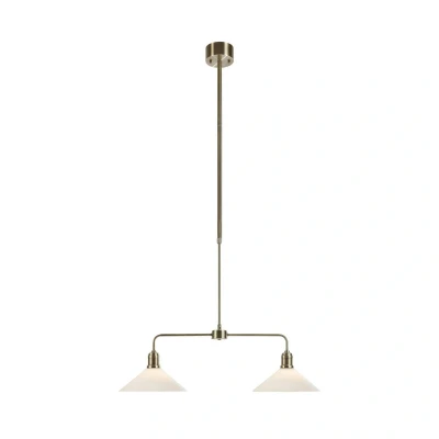 Markslöjd Vela pendant light, antique brass, 2 bulb design, glass, length 75 cm