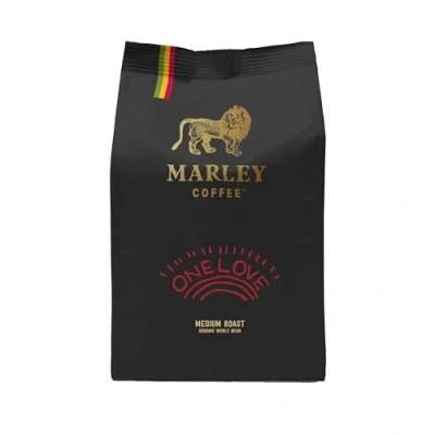 Marley Coffee Medium Roast Organic Coffee Beans 227g - One Love Blend - From The Marley Family - For All Coffee Machines - Strength 3 One Love is our classic medium roast blend, full of floral notes and revealing hints of blueberry, cocoa and spice. This well-rounded coffee tantalises the palate, leaving a profound cherry finish. One Love. One Life. Founded in Jamaica in 2007 by Rohan Marley, Marley Coffee is a coffee company from the Marley Family and includes Jamaica Blue Mountain, Rainforest Alliance and Organic coffee blends. Launched in 2012 in the UK, Marley Coffee has won multiple Great Taste Awards and the Soil Association Beverage of the Year Award. Marley Coffee is also now available in over fifteen European countries. The Marley Coffee range includes One Love Medium Roast, Buffalo Soldier Dark Roast and Lively Up Espresso Roast along with Talkin’ Blues 100% Jamaica Blue Mountain and Smile Jamaica 20% Jamaica Blue Mountain coffee.