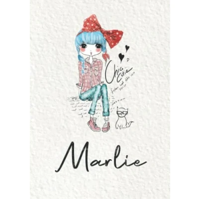 Marlie: Notebook A5 Personalized name Marlie Birthday gift for women, girl, mom, sister, daughter Cover: Fashion girl with cat 120 lined pages journal, small size (ca. 6 x 9 inches)