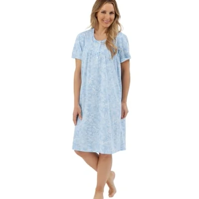 Short Nightdress For Women - Our Marlon Marcia nightie is the shorter version of our popular Maria nightgown, offering a classic 102cm (40") length for ease & comfort. Premium Sleepwear Fabric - Made from soft 160gsm 100% combed cotton jersey or easy-care 65% polyester / 35% cotton blend , high-quality fabrics designed for comfort, style, and long-lasting wear. Beautiful Prints & Colours -Available in multiple floral prints and solid colours, perfect for women’s nightwear and loungewear. Elegant Details -Nightdress options include broderie anglaise ribbon-slot trim and matching ribbon or simply classic trim-free nightie designs Looking for gifts for her or present for mum? Why not visit our Marlon Storefront for more classic ladies loungewear, soft nighties and plush fleece housecoats, robes & bedjackets.