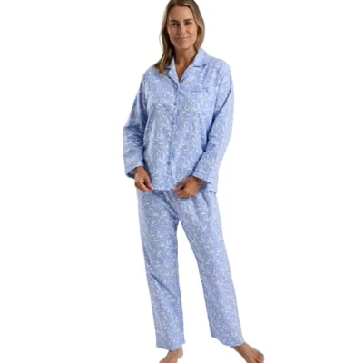 Marlon Womens Blanche Printed Brushed Cotton Piped Revere Collar Pyjama, Pretty Blue, 16 18