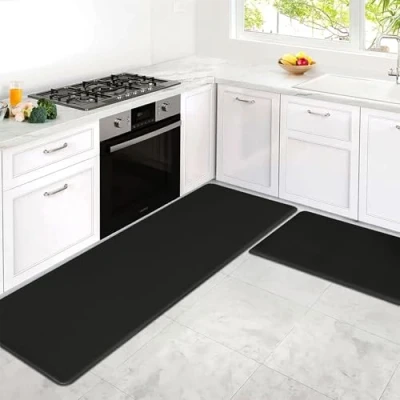 Marlow Kitchen Rugs, PU Msts Set 2 Piece, Anti Fatigue Mats, Cushioned Runner Rug, Thick Waterproof Non Skid Ergonomic Comfort Foam for Sink Laundry, Black, 44x74cm+44x150cm