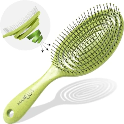 NO-PULL / NO-PAIN: The unique combination of bending bristles AND body is unbeatable for detangling. MarQus is the new must-have in every bathroom. The bio-friendly brush works wet & dry and on different hair types for comfortable daily hair care. LESS DAMAGE / LESS TIME: The semi-ventilated design helps remove moisture faster. The soft, anti-static bristles gently detangle and protect hair. They even distribute the scalp's natural oils for silky, shiny, healthy-looking results. FOR ALL TYPES OF HAIR: Optimal hair care for curly, wavy, straight, long, thin or thick hair. Can also be used as an extension brush or for curly hair. The hairbrush is suitable for women, men and children. BIOFRIENDLY & Organic: Best quality for the sake of the environment - marQus is made of bio-plastic. Made from renewable biomass such as straw and wood waste for healthy and eco-friendly hair styling. 100% vegan. Enjoy the new way of hair detangling and try marQus "wheat miracle" for optimal feel and glide through. Top value for money and high-quality, robust, flexible design.