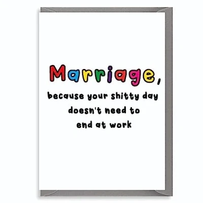 Marriage, because your shitty Day doesn't need to end at work Funny Wedding Card Rude Just Married Mr & Mrs WED15