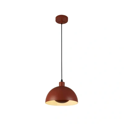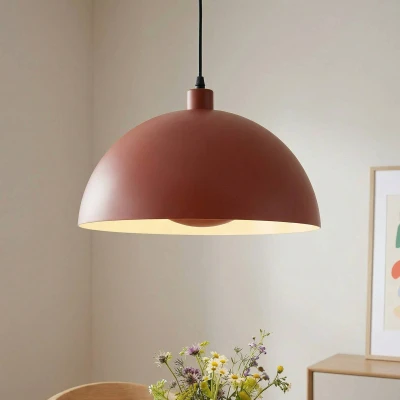 Mars 1 Light Dome Celling Pendant, Burnt Orange Metal & Cream Inner