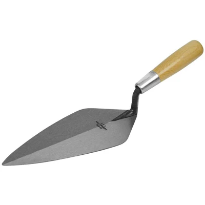 General description Marshalltown M3313 33 London Pattern Brick Trowel features a wooden handle and is designed for durability and performance. Manufactured from a single piece of high-grade tool steel, this trowel is expertly ground from heel to toe, ensuring a polished finish and a unique feel during use. Technical specifications Size: 330 x 137 mm (13 x 5 3/8 in) Material: High-grade tool steel Handle: Wooden Other information The trowel is produced using modern forging equipment. Features a polished steel ferrule for added strength. Designed with a strong impact area for extra endurance.