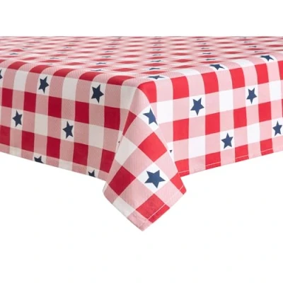 Martha Stewart Americana Star Gingham Plaid Indoor Tablecloth, Patriotic USA America Decor, Red/White/Blue, 60"x84"