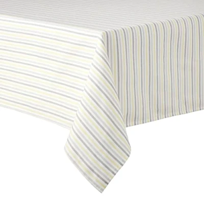 Martha Stewart Daisy Stripe Tablecloth Single Pack, Grey/Yellow, 60"x84"