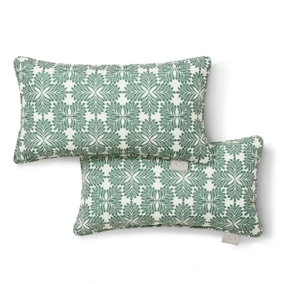 Martha Stewart Tulum Indoor Outdoor Decorative Lumbar Pillow 2 Pack Set, UV Fade Resistant, Water Repellent, Printed Modern Design, 11"x18", Green