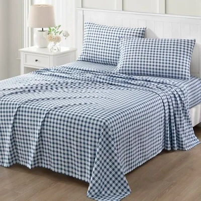 SOPHISTICATED & TIMELESS in a blue-and-white checkered plaid pattern, this ultra-soft sheet set from Martha Stewart makes a stylish foundation for any bed. REFRESH YOUR BEDDING STYLE with this ultra-soft 100% microfiber sheet set. Brushed and washed for added softness, the flat sheet, fitted sheet, and pillowcases in this set have a cozy, lived-in feel you'll love. Pair this sheet set with quilts, duvets, and other designs by Martha Stewart. EASY CARE FEATURES ensure you can enjoy your comfortable sheet set, night after night. Fitted sheet is fully elasticized and fits mattresses up to 16" deep. Machine-wash warm, normal cycle. Use only non-chlorine bleach when needed. Tumble-dry low and remove promptly. Warm iron when needed. King Sheet Set Includes: 1 Flat Sheet (110in x 104in), 1 Fitted Sheet (78in x 80in x 15in), 2 King Pillowcases (20in x 40in) DESIGNED WITH CARE and OEKO-TEX STANDARD 100 certified, this product is made with your comfort and safety in mind. Rest easy knowing your product is made with high-quality materials and extensively tested to meet the highest standards for safety.