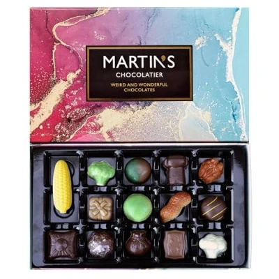 Martin’s Chocolatier Weird & Wonderful Signature Collection Belgian Luxury Chocolate Gift Box, 14 Pieces Milk Dark White Assorted Pralines Truffles