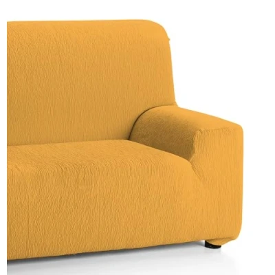 Fabric composition: 50% polyester, 45% cotton, 5% elastomer. Quality: Jacquard Contains: 1 x EMILIA 3 Seater Stretch Sofa Cover, Gold High quality elastic fabric; contains elastic bands. Washing: Machine washable at 30°C. Made in Spain by Enguitex Home.