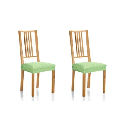 Made of elastic fabric and elastic straps to fit the chairs perfectly. Fabric Composition: 50% Polyester, 45% Cotton, 5% Elastomer; Quality: Jacquard Contains: 1 x Pack of 2 Emilia Seat Covers Washing: machine wash at 30°C Measures 40 to 50 cm seat width. Made in Spain by Enguitex Home