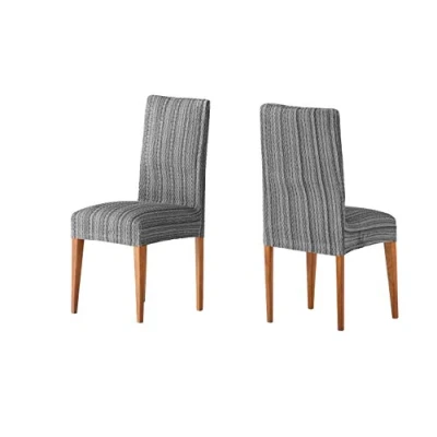 Fabric composition: 50% polyester, 45% cotton, 5% elastomer. Quality: Jacquard Contains: 2 chair covers with elastic backrest. Washing Instructions: Machine Washable at 30° C Measures 40 to 50 cm seat width, 50 cm back rest Manufactured in Spain by Enguitex Home