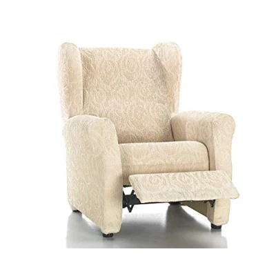 Composition: 50% Polyester, 45% Cotton, 5% Elastane; Quality: Jacquard Box contents: 1 x elastic cover for Indiana Camel recliner chair Washing instructions: machine washable at 30°C Made in Spain by Enguitex Home