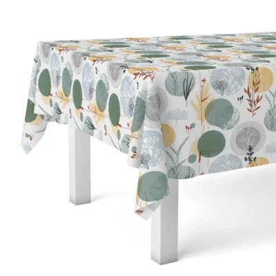 ✅ NATURAL DESIGN IN GREEN TONES - The Siena Verde tablecloth features a print of leaves and branches in circles on a light background, ideal for a fresh, organic and cozy decor. High-quality material: 90% PVC and 10% polypropylene: a robust, flexible and durable oilcloth tablecloth, ideal for everyday use in the kitchen or dining room. ✅ ULTRA EASY CLEANING - With just a damp cloth it recovers its original appearance after each use. Perfect for everyday or impromptu gatherings. ✅ VERSATILE AND FUNCTIONAL - Available in various sizes to fit different table types, both indoors and outdoors. ✅ QUALITY AND DESIGN - With the guarantee of Martina Home, a firm specializing in home textiles that combines functionality with decorative style.