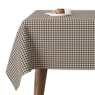 Martina Home TEFLONATED TABLECLOTH MADE Petit Vichy BROWN 100X140 CM