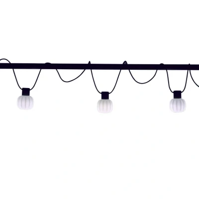 With a distance of 100 cm between each lantern, the light chains are between 10 metres (5 lanterns) and 15 metres (10 lanterns) long. Behind each lantern is a light source mounted on a resin and rubber base. This durable material ensures that the light source stays in place, making the product perfect for outdoor use. The white plastic material of the lampshade filters the light perfectly for outdoor use.