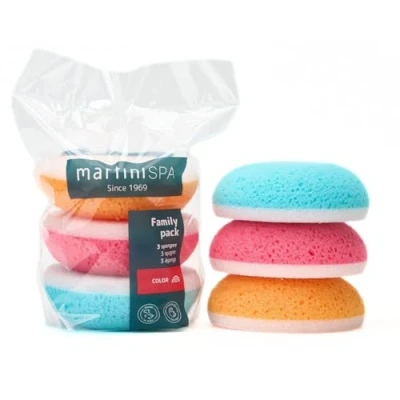 Round and colourful body sponges in a comfortable and inexpensive family packaging. The sponge is ideal for daily cleansing of all skin types. The soft side gently cleanses even the most sensitive skin. . The exfoliating side gently exfoliates your body. International products have separate terms, are sold from abroad and may differ from local products, including fit, age ratings, and language of product, labeling or instructions., Manufacturer: martini SPA