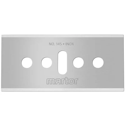 Sturdy blade: The original MARTOR industrial blades can be used 4 times and are extremely sharp. They are perfect for the most common cutting work. High-quality sharpening: The practical blades with double bevel have a cutting edge that is sharpened on both sides. It is particularly pronounced, which reduces the amount of force required for certain cutting work. Versatile: The blades are ideal as replacement blades for suitable MARTOR safety knife, such as the SECUMAX EASYSAFE and SECUNORM 175. Family-run for over 80 years: The traditional company MARTOR produces innovative and high-quality cutting solutions for professional and safe use. Scope of delivery & Product features: 10 x MARTOR industrial blade no. 145 in dispenser, Material: Stainless steel, Length: 39 mm, Width: 18.5 mm, Material thickness: 0.3 mm, Bevel: 2-sided, Blade facets: 1-fold, 5-hole blades., Weight: 0.02 pounds, Manufacturer: MARTOR KG