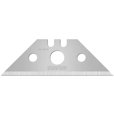 Sturdy blade: The original MARTOR cutter blades in trapezoidal shape can be used twice and are extremely sharp. They are durable and perfect for the most common cutting work. High-quality sharpening: The practical blades with double bevel have a cutting edge that is sharpened on both sides. It is particularly pronounced, which reduces the amount of force required for certain cutting work. Versatile: The blades are ideal as replacement blades for suitable MARTOR safety knife. Family-run for over 80 years: The traditional company MARTOR produces innovative and high-quality cutting solutions for professional and safe use. Scope of delivery & Product features: 10 x MARTOR trapezoid blade no. 42045 in dispenser, material: steel, length: 58.4 mm, width: 19 mm, material thickness: 0.45 mm, grind: 2-sided, blade facets: 2-fold, 3-hole blades, item no.: 42045, Weight: 0.0440924524 pounds, Manufacturer: MARTOR KG