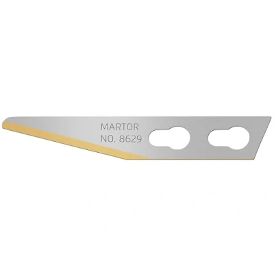 Sturdy blade: The original MARTOR graphic blades are extremely sharp. They are durable and perfect for filigree and particularly precise cutting work. TiN-coated: The titanium-nitride coating extends blade life, reduces wear, maintains sharpness, protects against corrosion and ensures consistently high cutting comfort - even with intensive use. Suitable replacement: The blades are ideal as replacement blades for the MARTOR GRAFIX 501 graphic knife, TRIMMEX CUTTOGRAF and TRIMMEX SIMPLASTO. Family-run for over 80 years: The traditional company MARTOR produces innovative and high-quality cutting solutions for professional and safe use. Scope of delivery & Product features: 100 x MARTOR graphic blade no. 8629 in magazine, material: steel, length: 34.4 mm, width: 5.7 mm, material thickness: 0.5 mm, grind: 2-sided, blade facets: 2-fold, 2-hole blades, item no.: 8629, Weight: 8.81849048E-4 pounds, Manufacturer: MARTOR KG