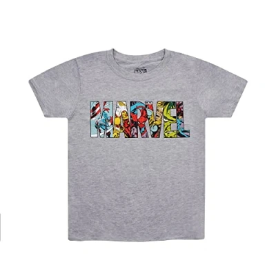 Marvel Boy's Logo Characters T Shirt, Grey, 12 Years UK
