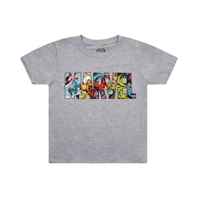 Marvel Boys' Logo Characters T Shirt, Grey (Sport Grey), 7 8 Years