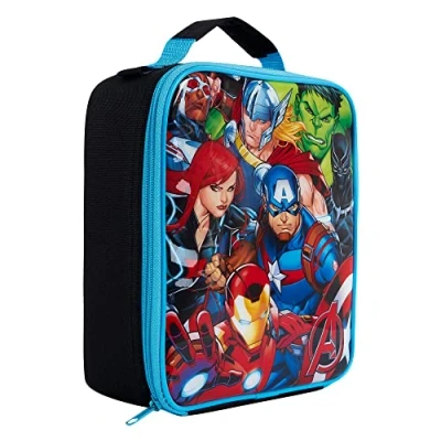 Marvel Group Avengers Insulated Kids Lunch Handle, Official Merchandise by Polar Gear 600D Polyester, Reusable Food & Drink Thermal Cool Bag for School Nursery Snacks Picnic Black Blue