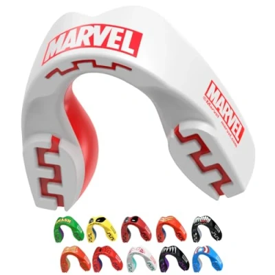 Marvel Logo Sports Mouthguard Dual Layer Premium Protection Junior Gum Shield with Case for Boxing, MMA, Rugby, Martial Arts, Judo and All Contact