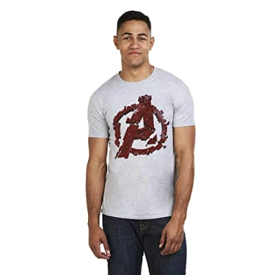 Marvel Men's Avengers Cracked T Shirt, Grey (Grey Marl Spo), XXL UK