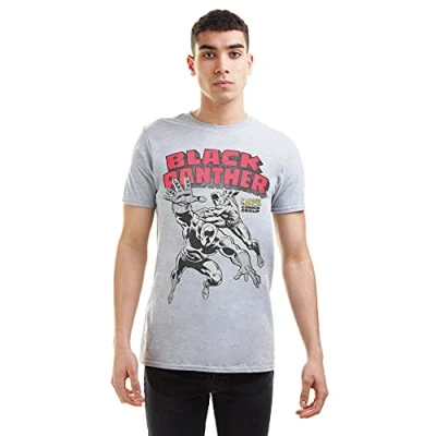 Marvel Men's Black Panther Combat T Shirt, Grey Marl, X Large