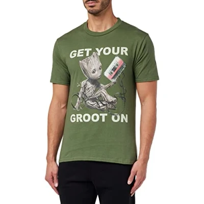 Marvel GET YOUR GROOT ON MEGUGAMTS072 Men's T-Shirt, Khaki XL 100% official licensed products Machine wash at 30°C inside out