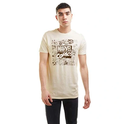 Marvel Men's Retro Square T Shirt, Natural, M UK