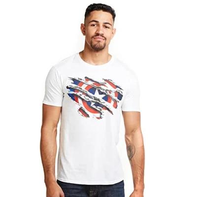 Marvel Men's Captain America Torn T Shirt, White, L UK