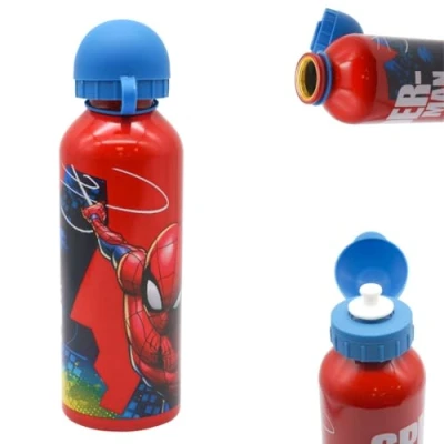 Spider-Man Aluminium Water Bottle – 500ml: Stay hydrated in superhero style! This Spider-Man water bottle for kids features a vibrant red design and beloved Marvel character, making it perfect for school, sports, and outdoor adventures. A must-have back-to-school water bottle for young fans. Leakproof & Dust-Proof Design for Everyday Use: Equipped with a secure flip-top cap and protective cover, this kids' aluminium water bottle is 100% dust-proof and leakproof—keeping drinks fresh and clean all day. Great for school backpacks and daily use. Child-Friendly, Easy to Open & Drink From:Designed with a built-in screw cap for spill-free sipping. Lightweight and easy to open, this school water bottle for children encourages independent hydration at school, gym, or during sports. Durable, BPA-Free & Safe Materials: Made of high-quality aluminium and BPA-free plastic cap for safety and durability. This reusable kids water bottle is a sustainable choice for eco-conscious families and a great alternative to disposable plastic bottles. Portable, Lightweight & Ideal for Travel: This lightweight water bottle for kids is ideal for travel, hiking, cycling, and everyday carry. Compact size (21cm x 6.5cm) fits easily into most school bags and side pockets. Great for school lunches, trips, and on-the-go hydration.