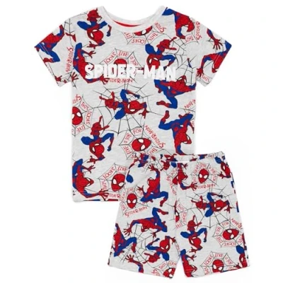 Marvel Spider Man Boys Pyjama Set Grey Short Sleeve T Shirt and All Over Print Shorts PJs for Kids Spiderman Classic Superhero Comic Books Character Sleepwear Movie Nightwear Gifts Children