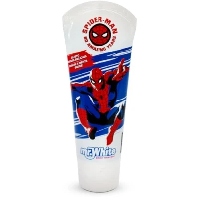 Official Marvel Merchandise: Featuring a beloved Spiderman character, this toothpaste turns brushing into an enjoyable experience, promoting consistent oral care. Gentle Yet Effective Cleaning: Formulated with mild hydrated silica, this toothpaste gently cleans teeth without harming enamel, making it perfect for kids aged 6+. Strengthens Enamel & Fights Cavities: Fortified with fluoride (450 PPM) and calcium glycerophosphate, it protects against cavities and remineralizes enamel for stronger, healthier teeth. Gum Health Support: Infused with Vitamin E (Tocopheryl Acetate) to nourish gums and protect sensitive oral tissues. Fresh Minty Breath: The delicate mint flavour delivers a refreshing and pleasant brushing experience, leaving the mouth feeling clean and fresh. It’s mild enough for kids yet effective in combating bad breath, and encouraging better oral care routines. Kid-Friendly & Safe Formula: Designed specifically for children aged 3+ with a mild, sugar-free formula that encourages healthy brushing habits. Hydrates and Prevents Dryness: Contains sorbitol and PEG-8, which act as humectants to retain moisture in the formula. This prevents mouth dryness during and after brushing, ensuring a smooth and comfortable experience.