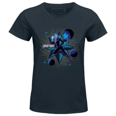 Marvel Captain Marvel WOMAVLSTS019 Womens T-Shirt, Navy, Large 100% Official Licensed Product Machine washable at 30°C