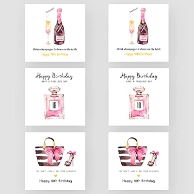 Marvello 18th Birthday Cards For Her Box Set (6 Cards) Premium Envelopes Included Assorted Designs Blank Inside Her, Friends