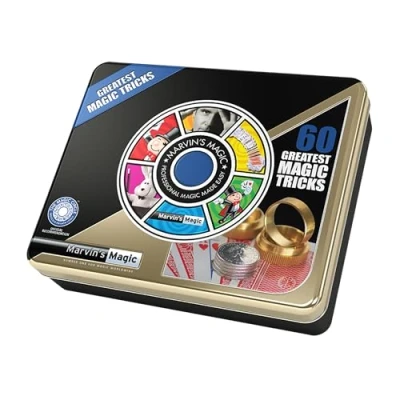 AMAZING SELECTION OF MAGIC TRICKS AND ILLUSIONS: This amazing magic kit is packed with numerous tricks that can be mastered in minutes! The special 60 Greatest Magic Tricks magic set will enable you to throw a sophisticated magic show and perform professional magic tricks for friends and family. This amazing box of tricks includes the dynamic coins, Svengali magic cards, instant money illusion, vanishing handkerchief plus more. DISPLAYED IN A STUNNING GIFT TIN: Includes sixty amazing magic tricks to amaze! The box features all of Marvin’s most ingenious props including Svengali cards & dynamic coins. Magicians have been using Svengali cards to entertain crowds for over a century, which makes them literally one of the oldest tricks in the book! Dynamic Coins is a classic vanishing trick that creates the illusion that coins disappear and teleport to a different place at the conjurer’s command! OFFICALLY RECOMMENDED BY THE MAGIC CIRCLE: Contains 60 magic tricks including The Dynamic Coins, Svengali Magic Cards, Vanishing Handkerchief and Instant Money Illusion. Look the part with your best clothing and take the magic wand, magic playing cards and much more for a fantastic collection to put together a stunning show. Marvin’s Magic has decades of experience with magic – so you can trust that the label’s selection set of 60 Greatest Magic Tricks that are guaranteed to impress. UNBELIEVABLE MAGIC BEFORE YOUR EYES: Marvin’s 60 Greatest Magic Tricks is a magic tricks set where the magician can used specially crafted objects to grab the audience's attention. This trick needs only the right props, a great guide (and we’ve taken care of both), a few minutes of practice and some illusionist’s flair! The ultimate birthday gift or party trick for anyone to enjoy, magic games are the perfect way to make a spectacular magic show at a party. AMAZING DELUXE COLLECTION SET: This is a limited edition set especially created for all of Marvin's fans as an exclusive deluxe collection of Marvin’s Magic tricks. Join us on this magical journey and use the advanced magic items to become fascinated with the wonders of tricks and illusions! Be the magic master with these new magic tricks and learn how to wow people with this awesome professional magic kit., Manufacturer: Marvin's Magic