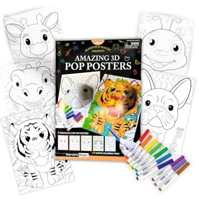 Marvin's Magic Amazing 3D Pop Posters Colourful Arts and Crafts Kit Includes Vibrant Markers Interactive Animal Designs Travel Friendly Perfect for Ages 5+