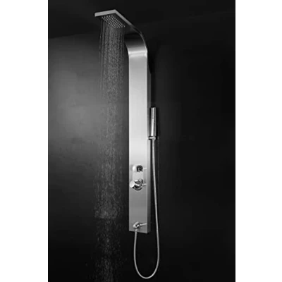 MARWELL Shower Panel Care Chrome 150 x 15 cm Column Brushed Stainless Steel Set with 2 Different Functions Rain and Hand