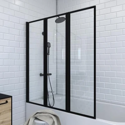Shower screen 3-piece measuring 125 x 143 cm. Adjustment range of 10 mm to compensate for unevenness or crooked walls. High-quality aluminium profiles in matt black. Left and right stop possible. High stability thanks to 4 mm thick tempered safety glass (EN12150). Bath attachment made of three movable elements. Easy to assemble even without specialist knowledge. Box contents: assembly instructions (English language not guaranteed), mounting material., Weight: 39.68320716 Pounds, Manufacturer: Deutscher Online Handel GmbH & Co. KG