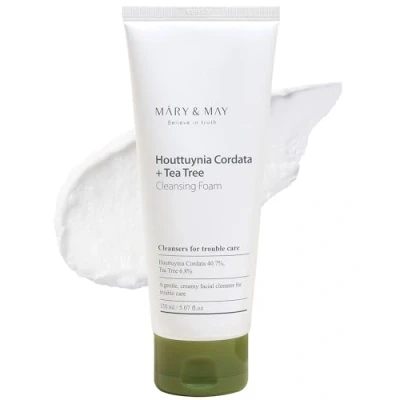CLEAN PORES AND RELIEVE SKIN TROUBLE: Mary&May Houttuynia Cordata + Tea Tree Cleansing Foam offers deep pore cleansing and rapid relief for skin troubles. Ideal for sensitive skin, this formula provides quick soothing, reducing redness and irritation for a clearer, healthier complexion. FRESH CREAMY FOAM, SKIN IRRITATION FREE: Experience the luxury of fresh, creamy foam that cleanses without stripping the skin. Dermatologically tested to ensure it is free from skin irritation, this foam maintains your skin's natural balance while providing a thorough clean. KEY INGREDIENTS - ALL EWG GREEN GRADE: Featuring a potent blend of Houttuynia Cordata, Tea Tree, and Hyaluronic Acid, our cleanser is formulated with ingredients that are all rated EWG Green Grade. Trust in a product that's as safe for your skin as it is effective. HOW TO USE: For best results, apply an adequate amount to wet skin. Gently massage into a rich lather, focusing on troubled areas. Rinse thoroughly with lukewarm water. Use morning and evening as part of your skincare regimen to achieve a clear, refreshed complexion. COMMITMENT TO CLEAN BEAUTY FROM KOREA: Proudly hailing from Korea, MARY & MAY embodies the essence of clean beauty with a conscience. Our products are not only vegan and cruelty-free but also made with all EWG green grade ingredients. We are dedicated to eco-friendly practices, utilizing 100% recycled paper and soybean oil ink for our packaging. This commitment reflects our deep respect for both skin health and environmental sustainability.